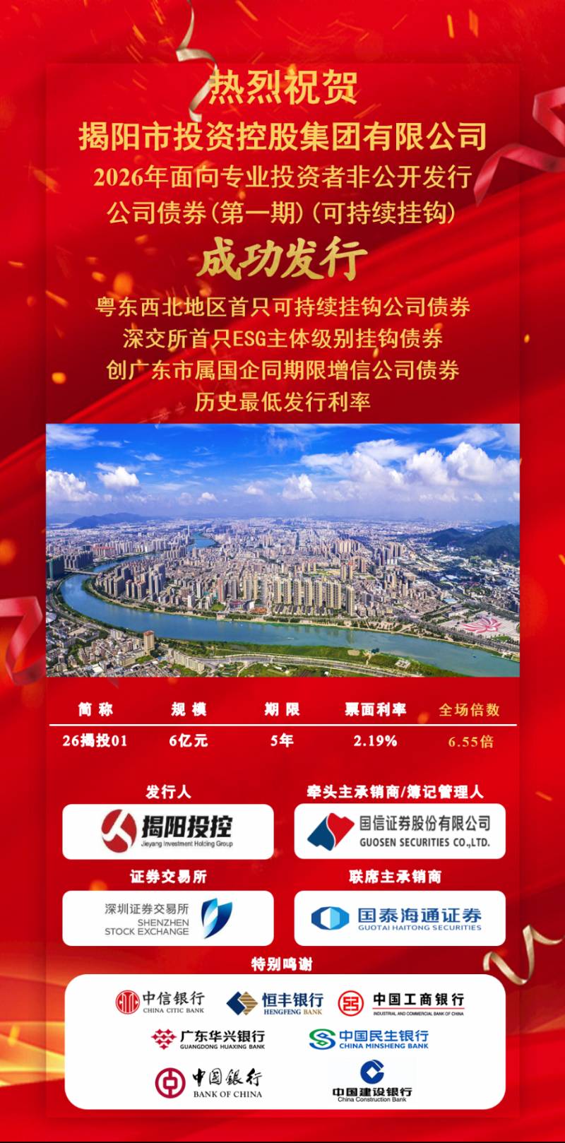 揭陽市投資控股集團有限公司2026年第一期公司債券發(fā)行成功
